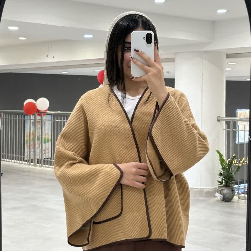 کت پانچو زنانه آرمانی مدل 001رنگ : نسکافه ای (تک رنگ)